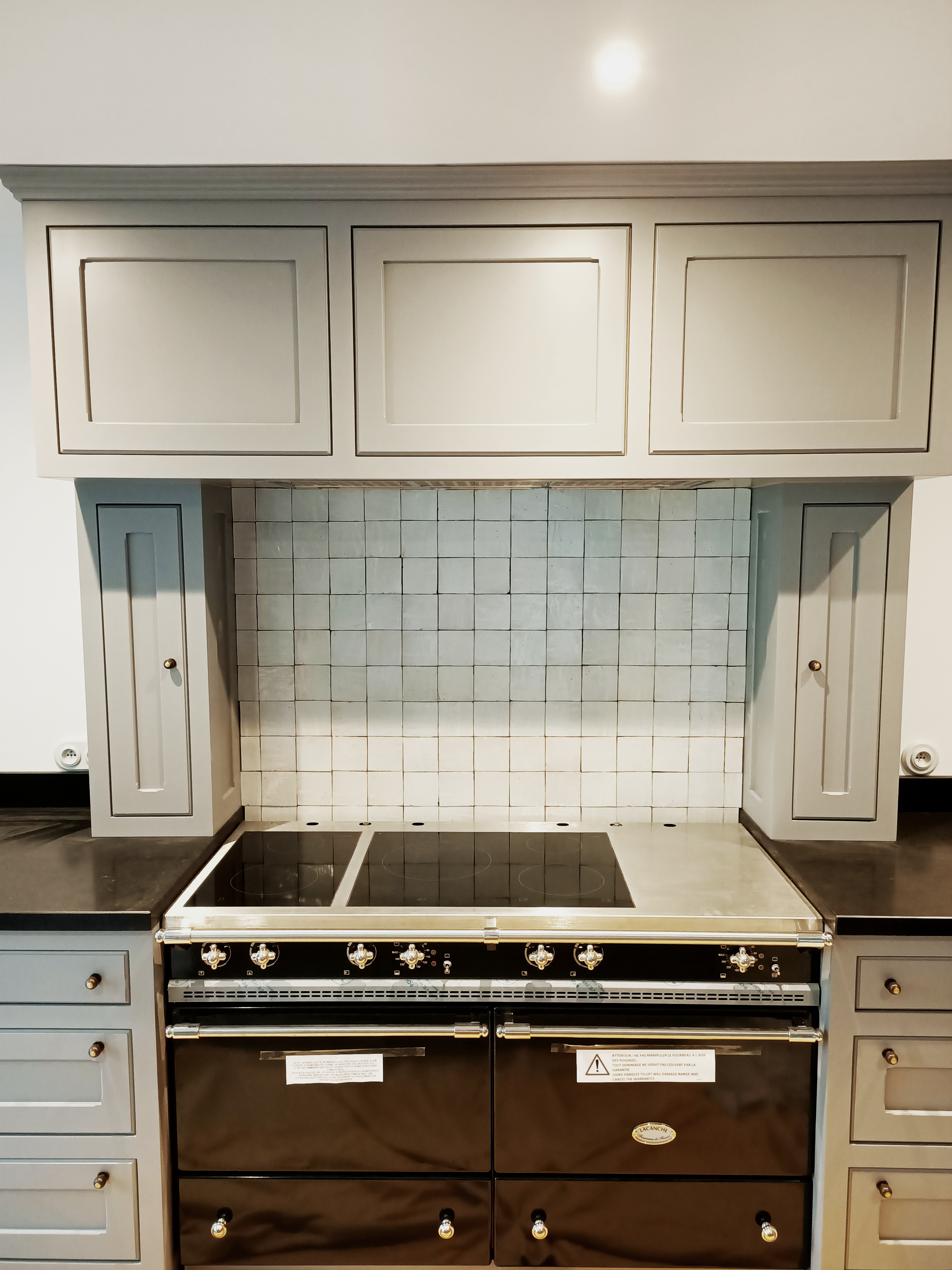 Les matières et revêtements sélectionnés donnent un cachet unique à cette demeure. Des prises et interrupteurs en porcelaine, une menuiserie sur-mesure pour les portes, des verrières pour amener de la luminosité, l’utilisation de faïences d’exception…