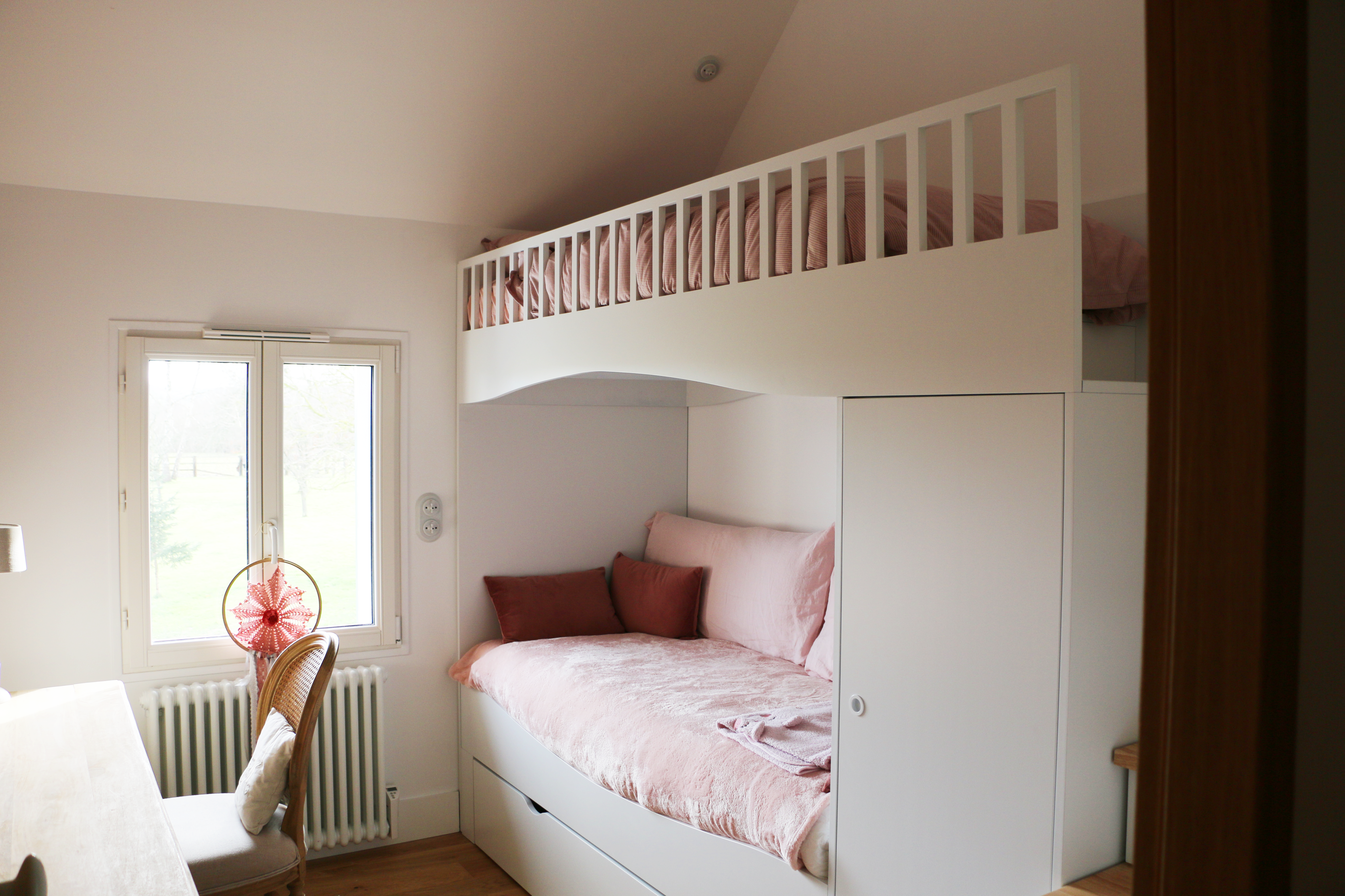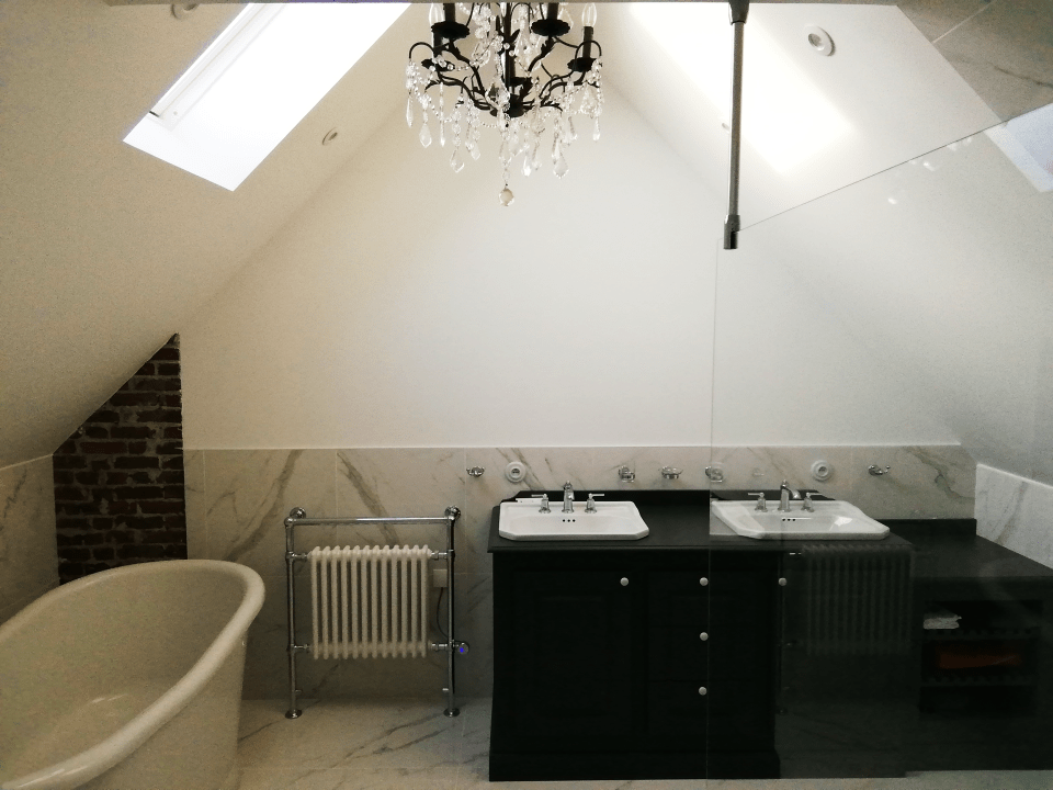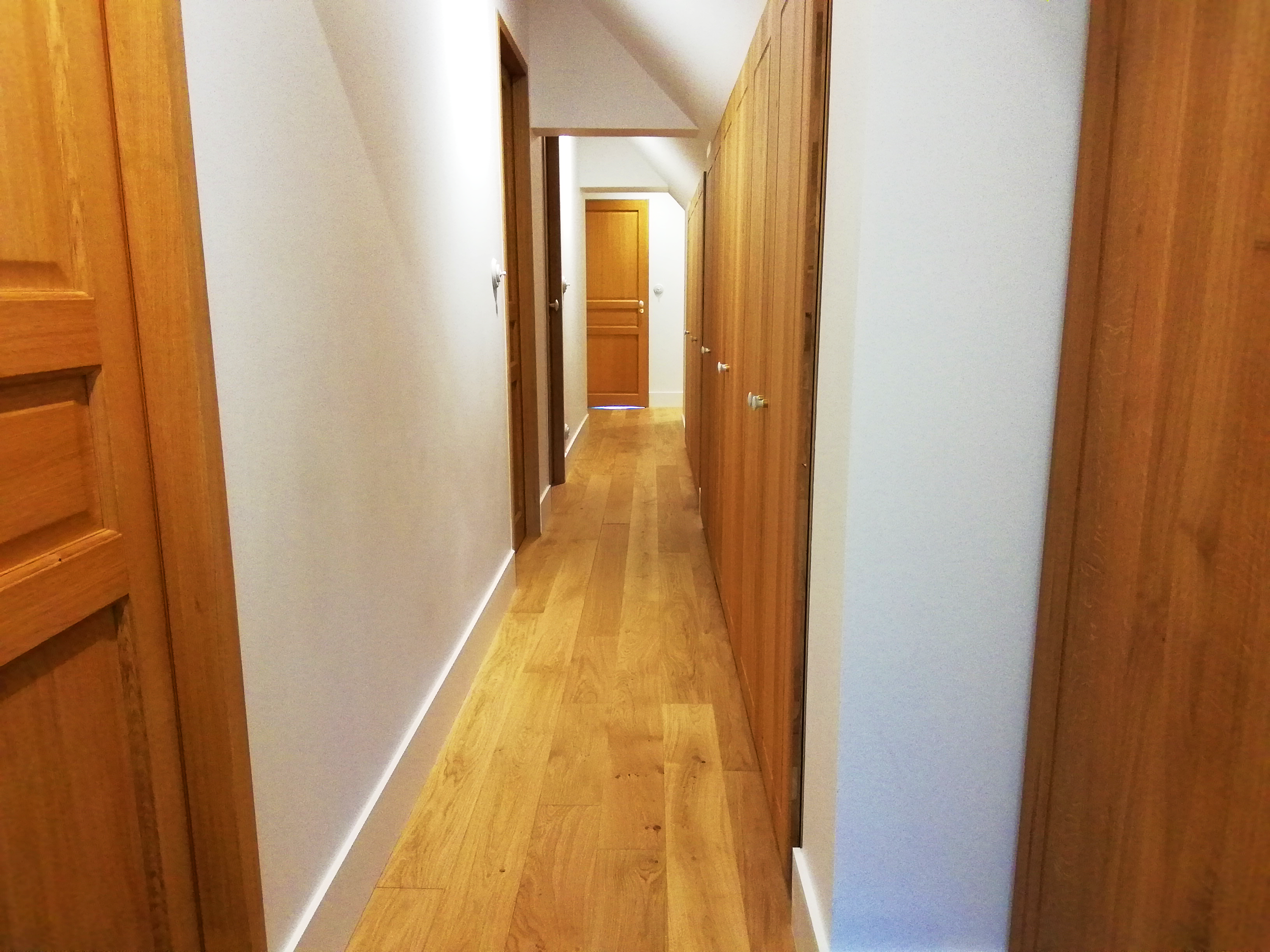 Agencement, électricité, fourniture et pose des sols, des portes, de l’escalier, création des salles de bain, peinture murs et plafonds, façade… tout a été revu.