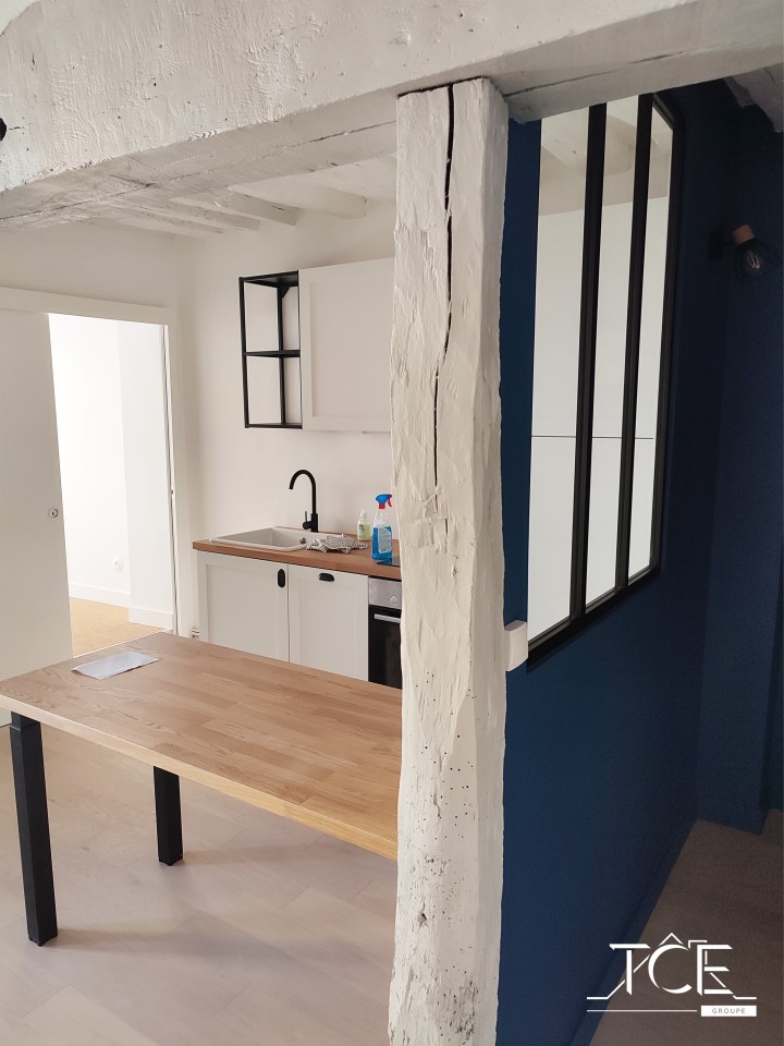 Tout les corps de métier (plombier, électricien, menuisier, peintre, plaquiste) ont participé au projet pour une rénovation totale de cet appartement à Rouen.