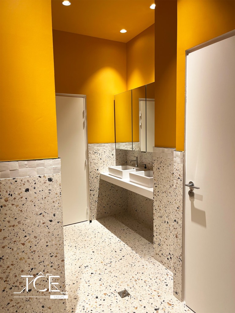Projet : Ce projet comporte plusieurs éléments qui sont : espace commun de coworking, box individuels de travail, coin bar et restauration, sanitaires. Découvrez en détail l’aménagement et les travaux réalisés par espace.