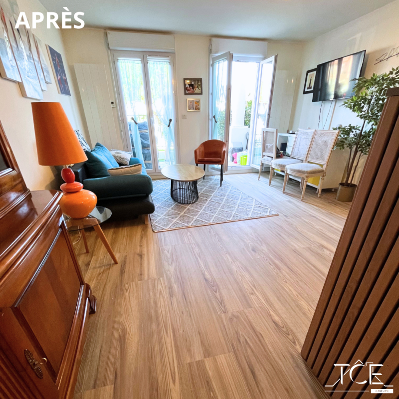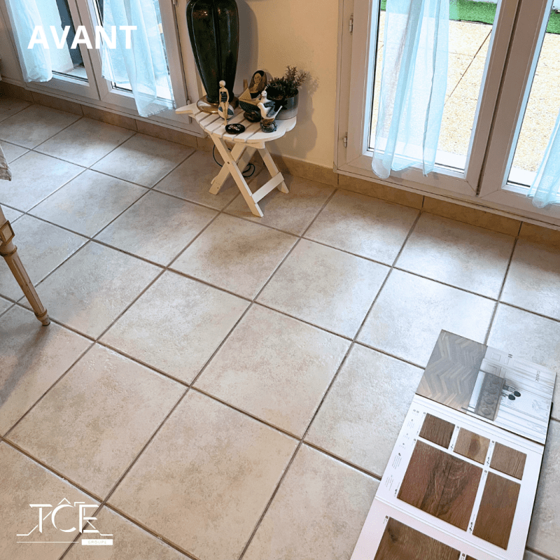L’ancien carrelage blanc a été intégralement remplacé par un revêtement acoustique effet bois Tarkett. Ce choix a transformé immédiatement la pièce, apportant chaleur et authenticité. Le rendu bois naturel crée une atmosphère douce et accueillante, tout en restant pratique grâce à sa grande résistance à l’usure et à sa facilité d’entretien. Ce nouveau sol contribue également à l’isolation acoustique, limitant les bruits de pas et rendant l’espace plus confortable pour tous les usages.